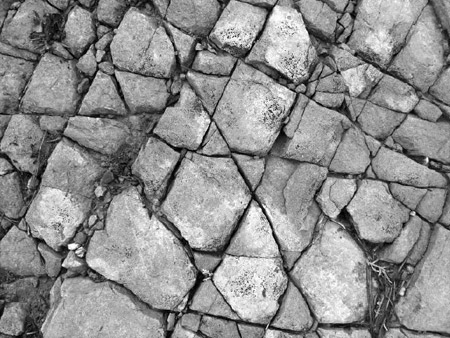 | Up here at 9300 feet, the bedrock fractures in neat patterns,